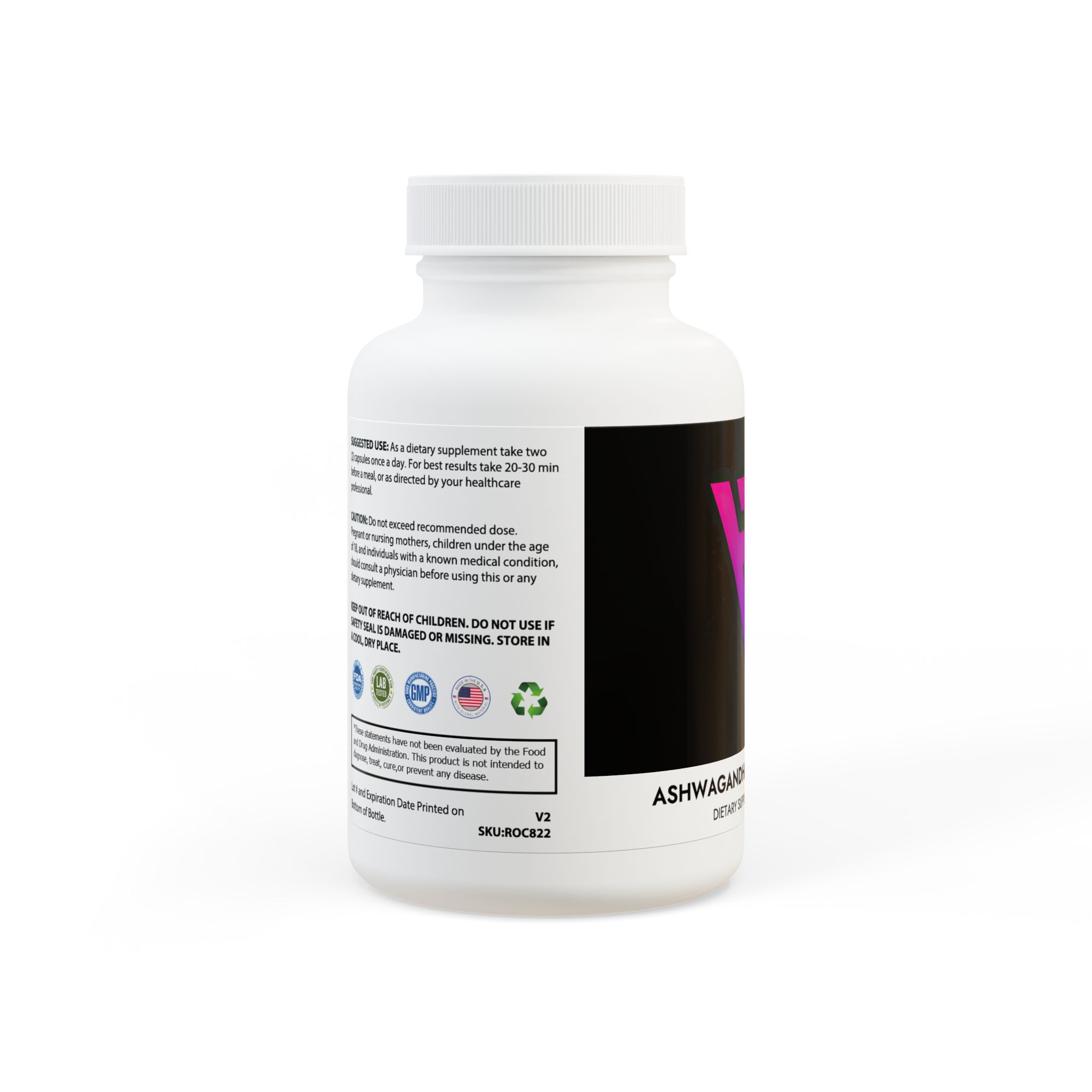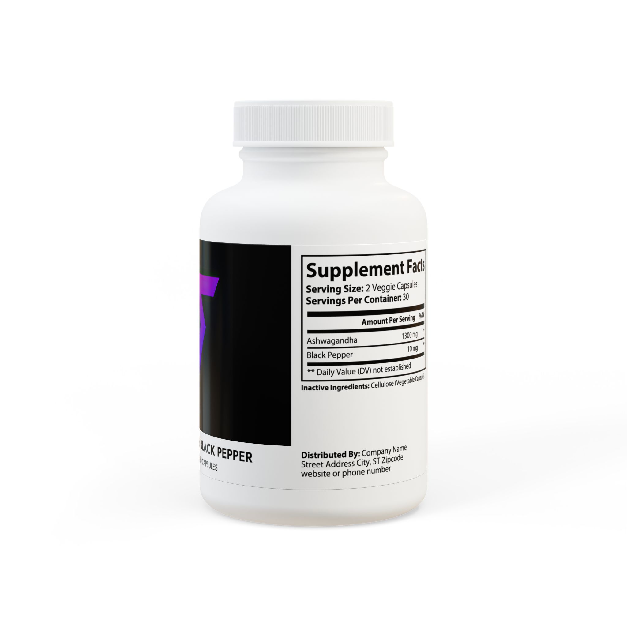 Ingredients: Ashwagandha, Black Pepper. Inactive Ingredients: Cellulose (Vegetable Capsule).