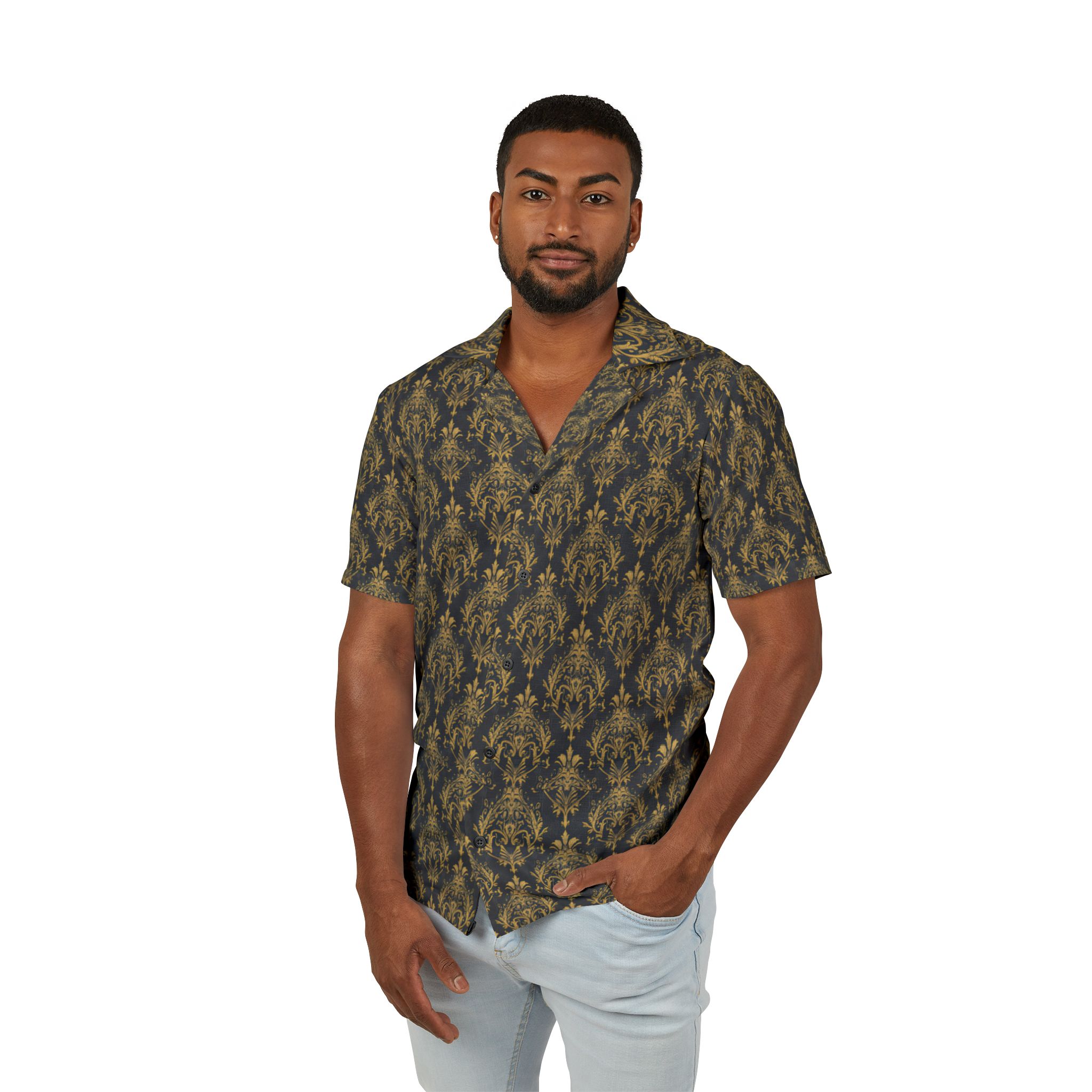 Add a touch of tropical flair to your wardrobe with this Men’s Hawaiian Camp Shirt. This stylish shirt combines a vibrant all-over print with a breathable design, making it perfect for summer days or beach vacations. Whether you’re lounging by the pool or hosting a barbecue, this shirt brings a laid-back vibe that’s both trendy and comfortable. It’s ideal for fashion-forward individuals who appreciate unique patterns and enjoy expressing their personality through their attire. Perfect for summer parties, tropical getaways, or casual gatherings, this shirt is a must-have for seasonal celebrations and outdoor fun!
