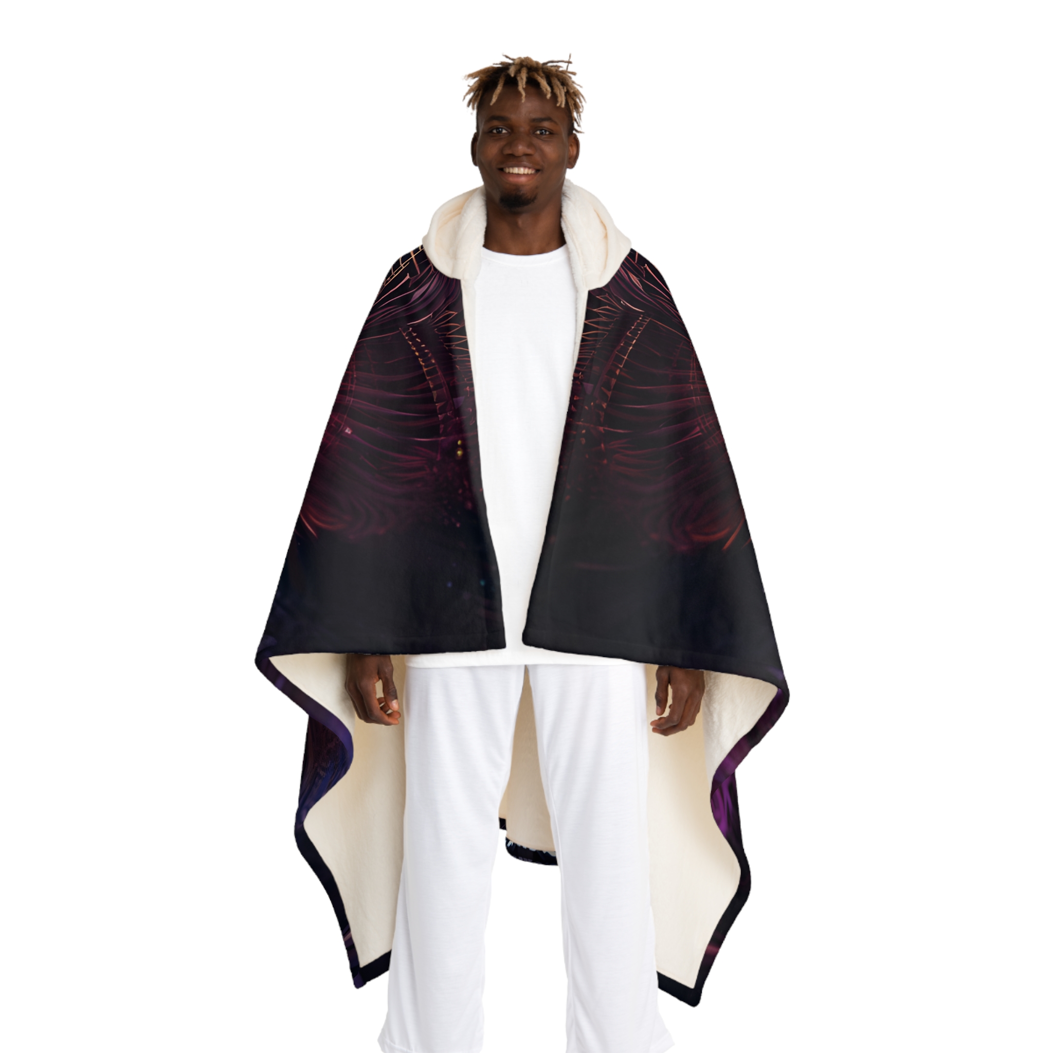 The Sherpa blanket is here to deliver fuzzy warmth and custom style. Made 100% with supremely soft polyester, this hooded fleece blanket is the perfect choice for keeping warm and cozy during the colder months of the year. Its cream-colored hood brings extra style points to your comfort.