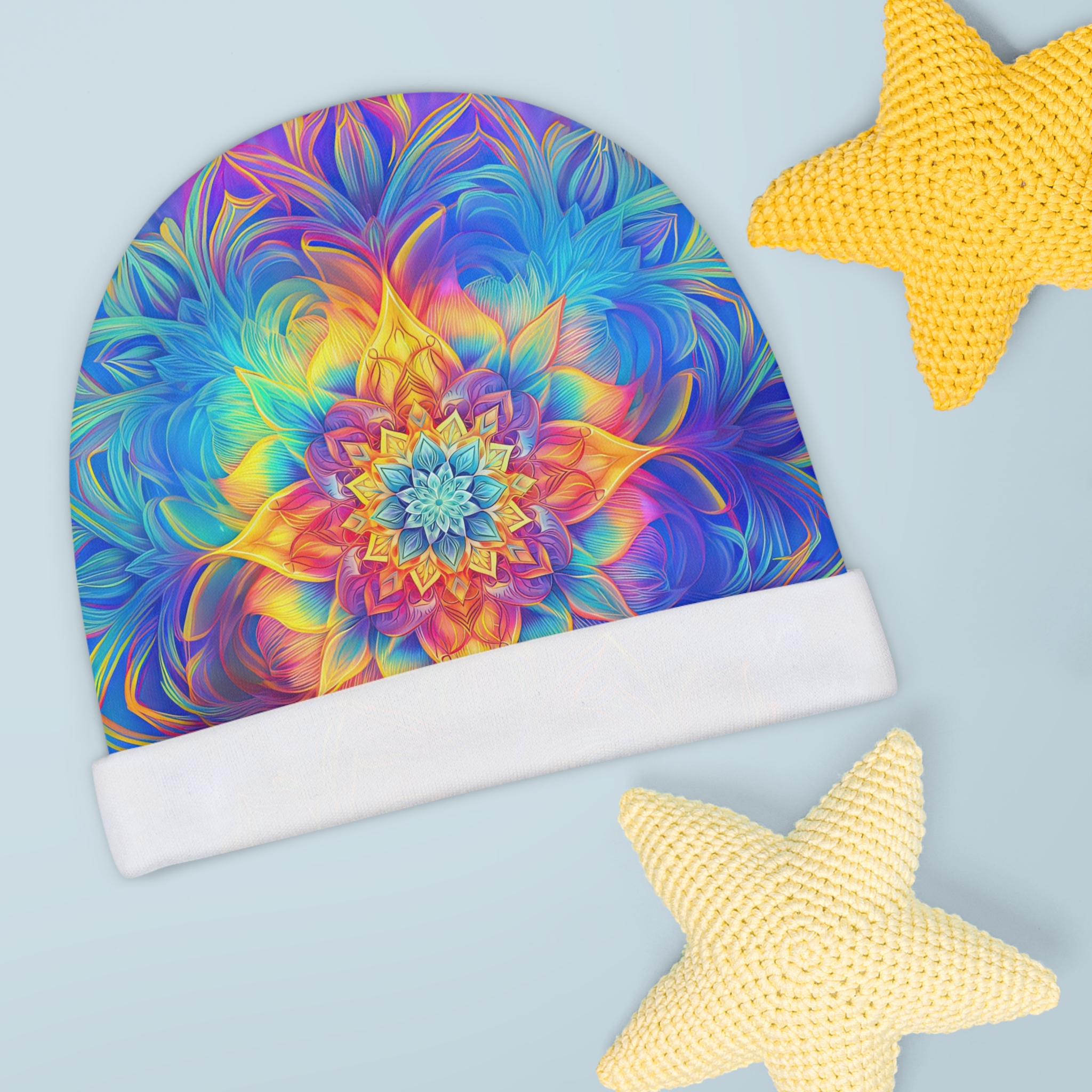 This Happiness Beanie is perfect for keeping your little one cozy and stylish. Made of 100% polyester, this beanie is strong, durable, and quick-drying. The interlock knit provides a smooth texture with a good amount of stretch. The adorable design printed on both sides will bring joy to any baby’s outfit. Ideal for parents looking to add a touch of happiness to their baby’s wardrobe.