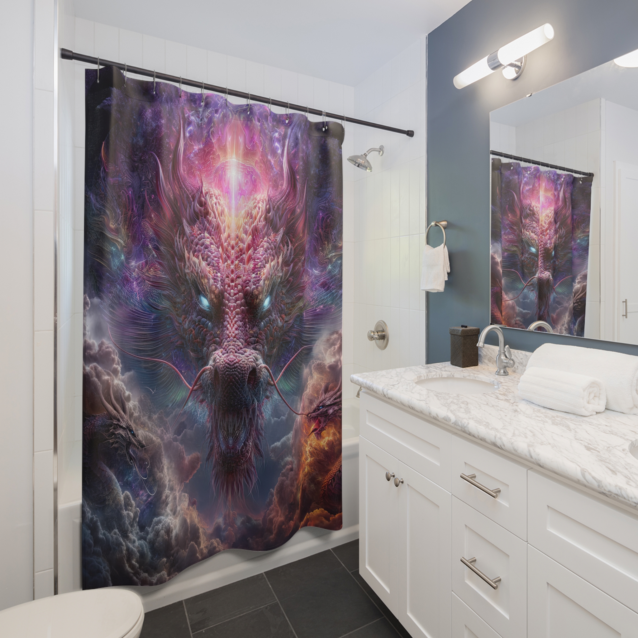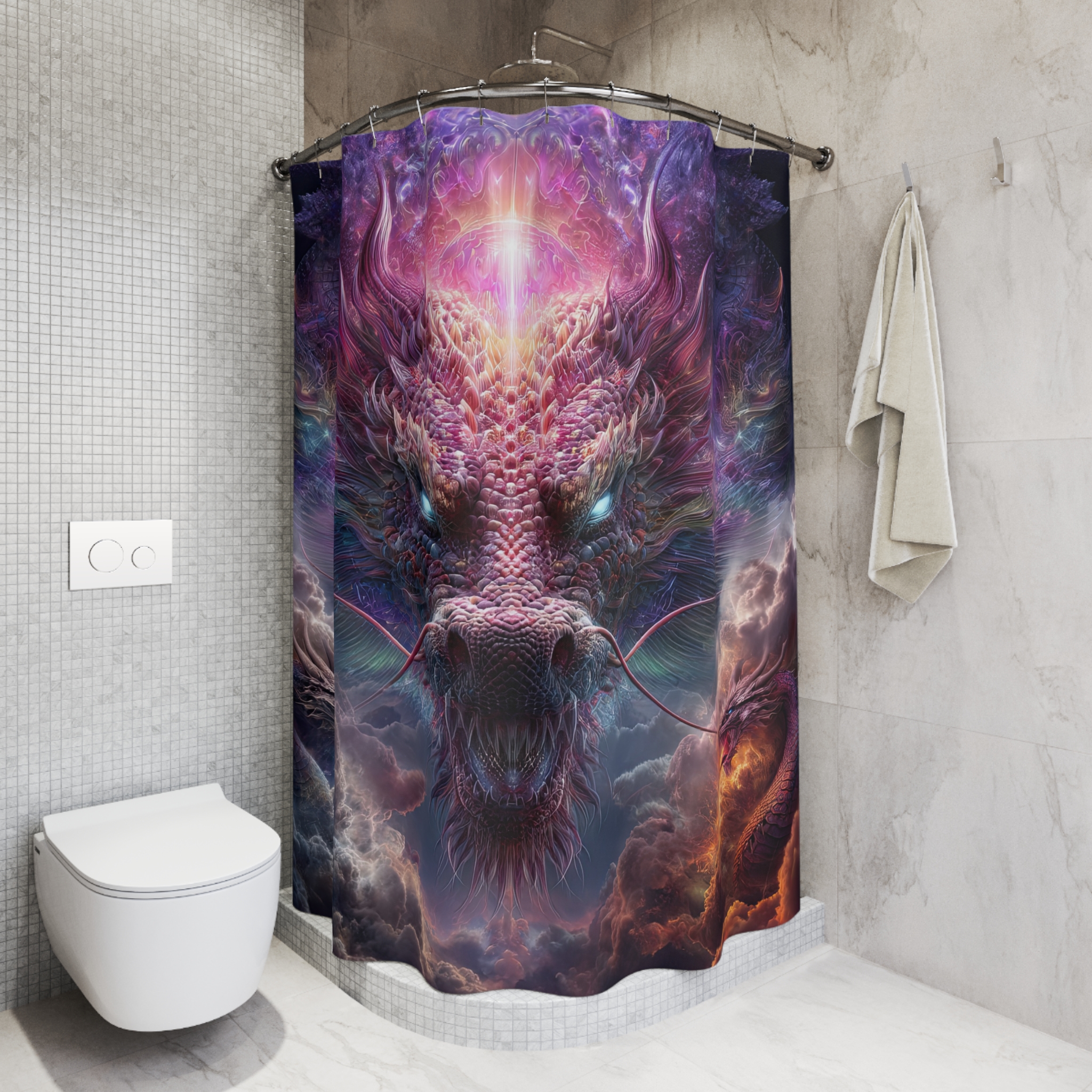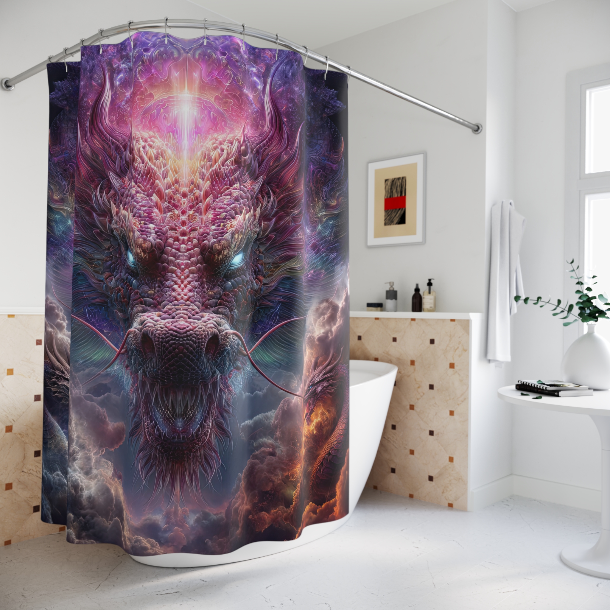 Transform your bathroom into a mystical oasis with this stunning shower curtain. The vibrant colors and intricate design create an enchanting atmosphere, promising to elevate your daily routine. This shower curtain is not just practical; it’s a statement piece that adds character to your space. Ideal for fantasy lovers, gamers, or anyone who appreciates unique home decor, this product makes for a perfect gift for housewarmings, birthdays, or holidays like Halloween. Let it inspire creativity and imagination every time you step into your shower!