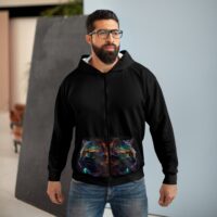 This zipped fleece jacket will keep you nice and toasty through the cold. It’s a great all-over print zip hoodie that is easy to customize without fear of visible white lines at the seams. It has a large front pocket, black zipper, a roomy hood and is custom cut and sewn. It’s your perfect pick this winter.
