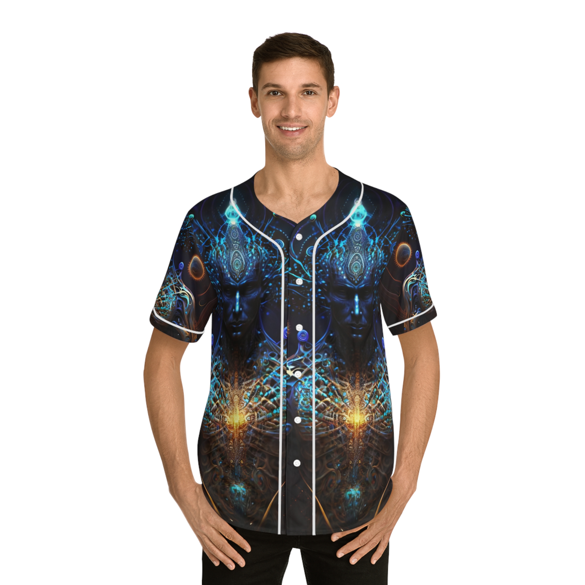 All-over prints make the crowd go wild – add yours now to this men’s AOP baseball jersey & create an instant classic. Featuring a full-button front and a rounded hem, these tees feature moisture-wicking fabric that keeps you cool when under pressure. Choose between a white or black trim color and buttons, add your design, and make it uniquely yours.