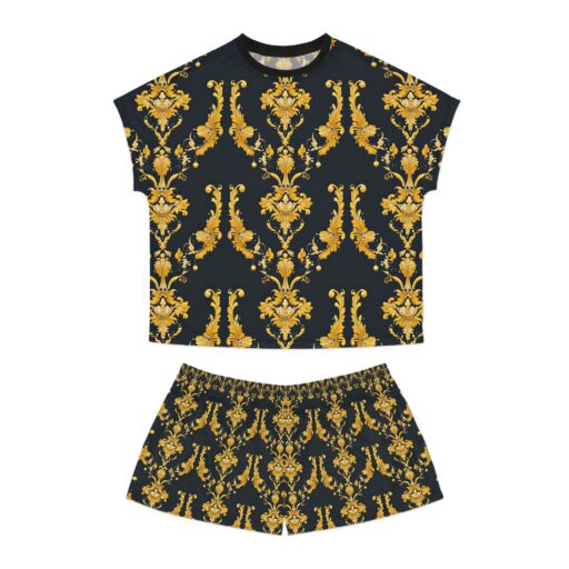 Elegant Women's Short Pajama Set - Luxurious Gold Damask Design