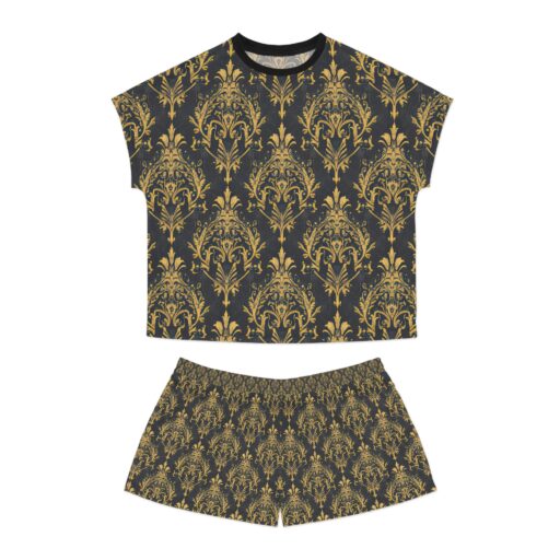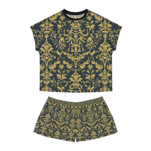Elegant Women’s Short Pajama Set – Luxurious Gold Damask Design