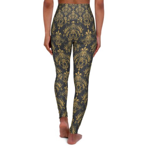 Elegant Gold Floral High Waisted Yoga Leggings for Stylish Fitness